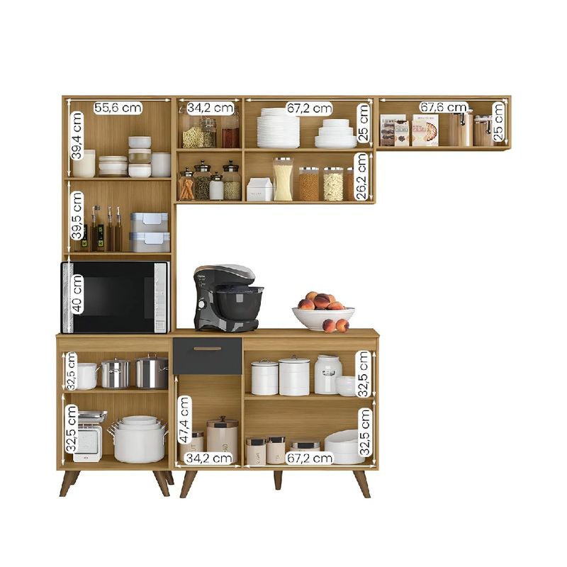 Armário de Cozinha Compacta Olinda Freijó Grafite - Poliman