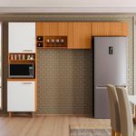 Renove sua cozinha com a sofisticação e funcionalidade da Cozinha Compacta Sicília da Poliman. Composta por 3 peças e 7 portas, ela é ideal para ambientes compactos, oferecendo organização, beleza e praticidade. Seu acabamento em freijó com off white acetinado e detalhes ripados frisados nas portas superiores trazem um toque moderno e elegante ao ambiente. O paneleiro conta com nicho decorativo e espaço exclusivo para micro-ondas, otimizando o uso do espaço. O aéreo de 120 cm possui 2 portas, prateleira interna, nicho decorativo e adega para 3 garrafas, unindo charme e funcionalidade. Já o aéreo sobre geladeira pode ser instalado acima do refrigerador ou fogão, oferecendo versatilidade na organização.