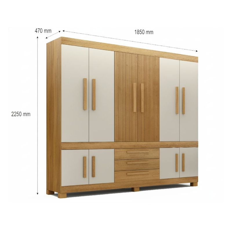 O Roupeiro Bem Te Vi é ideal para casais, oferecendo amplo espaço interno com 10 portas e 3 gavetas internas. Fabricado 100% em MDF, garante durabilidade e um visual moderno com detalhes fresados nas portas centrais. O Guarda-Roupa Casal Bem Te Vi da Valdemóveis é a escolha inteligente para quem precisa de um roupeiro completo com dimensões reduzidas. Com apenas 1,85m de largura, ele oferece uma capacidade de armazenamento surpreendente, distribuída em 10 Portas de abrir. O design do modelo Bem Te Vi é moderno e acolhedor, utilizando o acabamento bicolor Cinamomo Off White. Essa combinação é altamente procurada, pois o tom amadeirado do Cinamomo traz calor, enquanto o Off White garante luminosidade ao ambiente. As diversas portas e nichos internos facilitam a organização por tipo de peça, garantindo que o guarda-roupa do casal permaneça arrumado. Se você busca um Guarda-Roupa 10 Portas Compacto e com design atual, o modelo Bem Te Vi da Valdemóveis é a solução perfeita.