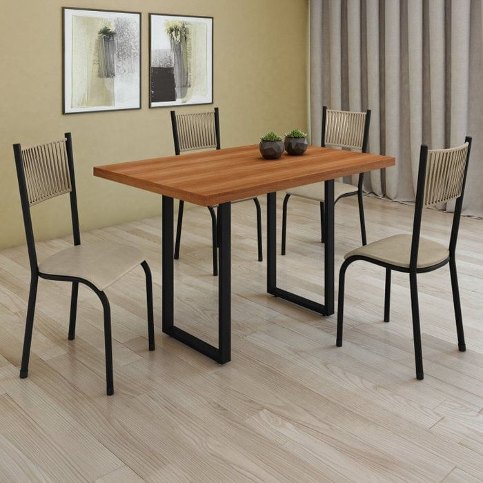 O Conjunto Mariana é a escolha perfeita para quem busca praticidade e estilo em espaços menores. A mesa quadrada possui tampo em Madeira Maciça, combinando elegância e resistência, apoiada em estrutura em aço com pintura epóxi para maior durabilidade. Acompanha 6 cadeiras com encosto em trama sintética e assento estofado estampado, proporcionando conforto e charme. Ideal para cozinhas e salas de jantar compactas, é funcional, moderno e fácil de limpar.