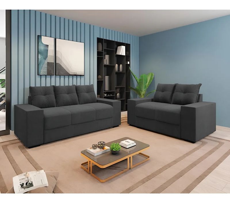 O Conjunto Sofá 3 e 2 Lugares Suede Chamego da marca Flash Estofados é a escolha perfeita para quem busca conforto e estilo em sua sala de estar. Com uma estrutura robusta em madeira de eucalipto e pés em PVC, este sofá garante durabilidade e resistência.