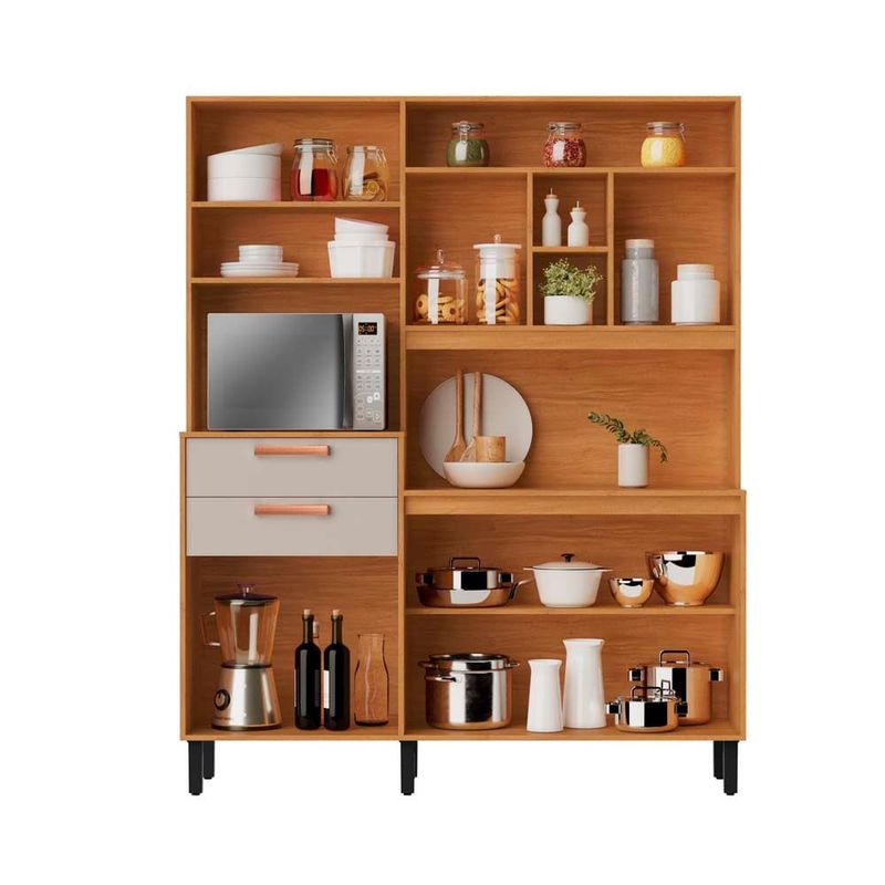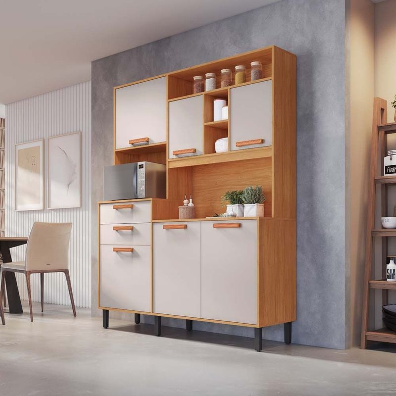 A Cozinha Compacta Nápoles da Itatiaia une a beleza do acabamento amadeirado com a modernidade das portas Off White. Projetada para ser funcional em pequenos espaços, ela oferece compartimentos bem distribuídos para organizar louças, utensílios e mantimentos com praticidade.