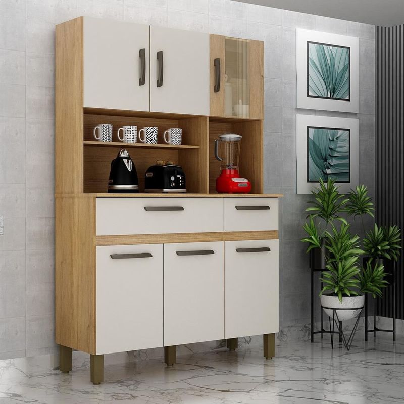 Armário de Cozinha Compacta Celia Cinamomo Off White - Poliman