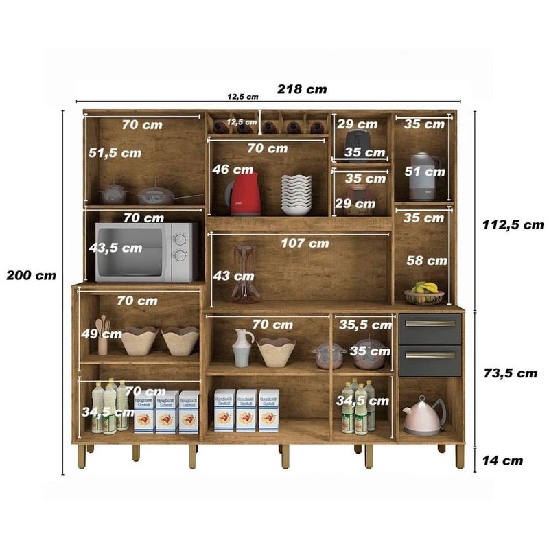 | Espaço para Micro-ondas: | Sim (Aprox. 43 cm x 70 cm x 45 cm (A x L x P)) |