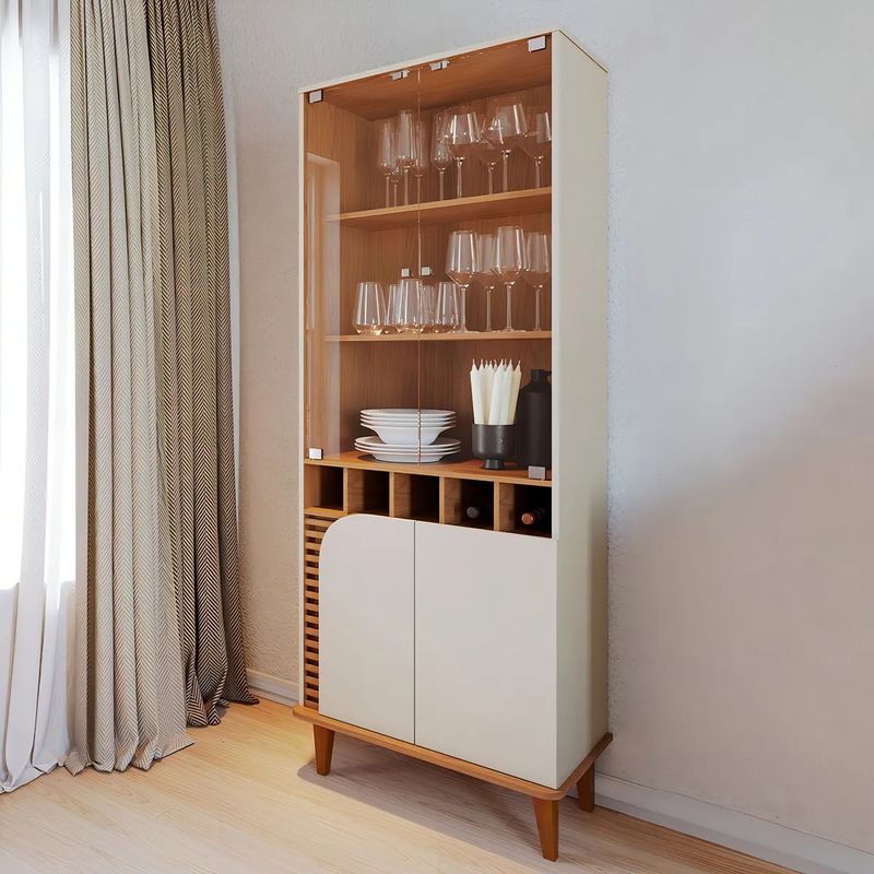 Que tal a Cristaleira Jurerê? Móvel sofisticado e com muita funcionalidade, a Cristaleira Jurerê ajuda muito na organização da sala de jantar. Com ótimo espaço interno para você acomodar suas taças e utensílios, a peça deixa tudo sempre arrumado e para os momentos de confraternização com os amigos. Além de receber utensílios, ela também tem visual elegante que dá um charme todo especial para a décor, isso graças à combinação entre a cor neutra e o acabamento amadeirado. Realmente linda, não é mesmo?