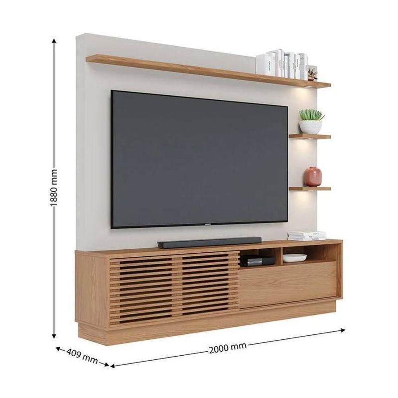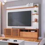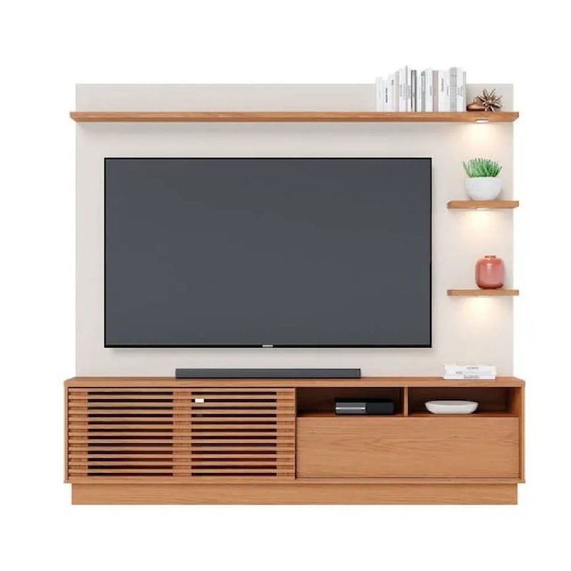 Uma ótima par quem busca por um móvel espaçoso e cheio de personalidade, o Home Theater Campeche possui um design clean e moderno. Com um painel para TVs de até 70 polegadas, possui três prateleiras superiores iluminadas por spots de Led, que trazem a sensação de tranquilidade e aconchego ao ambiente. Além disso, possui nichos internos e uma gaveta com corrediças telescópicas que são ideais para organização de aparelhos eletrônicos e demais objetos decorativos. Seu destaque fica por conta de sua porta deslizante ripada com brise que dão um toque especial do estilo contemporâneo ao móvel.