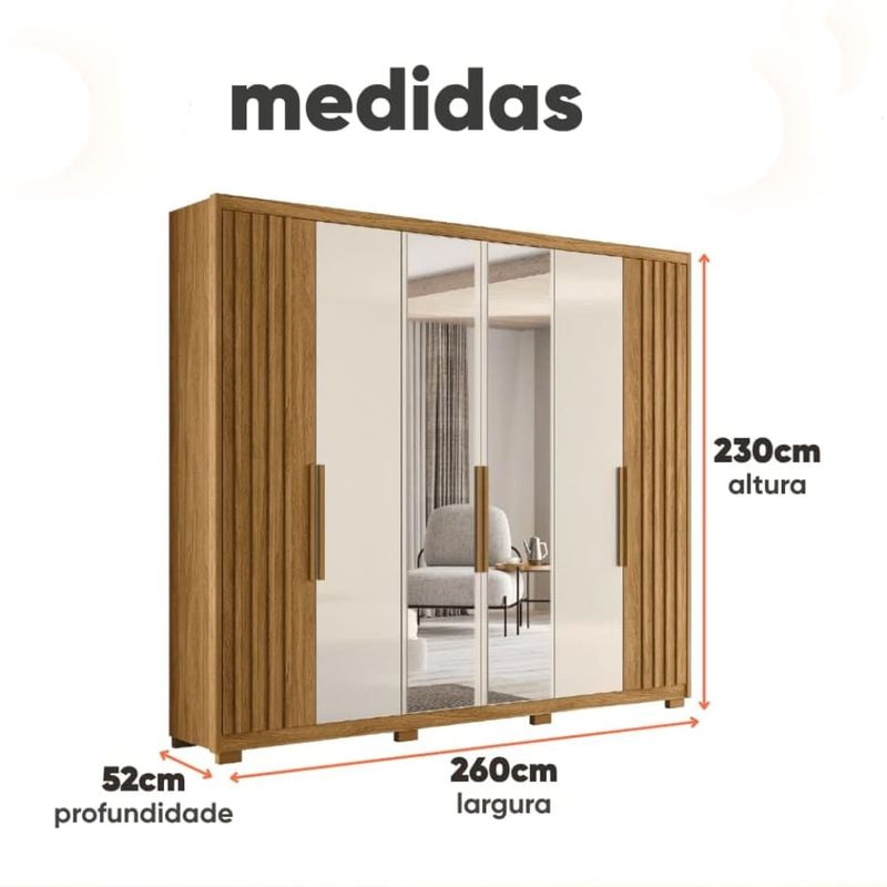 O Guarda-Roupa Casal Araguaia 2,60m da Moval é o móvel que transforma a organização e a estética do seu quarto. Sua dimensão de 2,60 metros garante que você tenha um Roupeiro Casal Grande, com compartimentos bem distribuídos para roupas, calçados e acessórios. O design é um destaque com a combinação elegante de Freijó Off White, que se alinha às últimas tendências de decoração. Os Espelhos nas portas são um diferencial prático e um elemento de design que confere sofisticação e a sensação de maior profundidade ao ambiente. Escolha o Guarda-Roupa Espelhado Moval Araguaia para um quarto funcional, com espaço abundante e um visual contemporâneo.