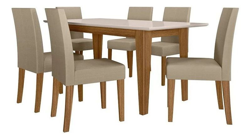 Com design contemporâneo a Mesa de Jantar Liz com 06 cadeiras é perfeita para completar seu ambiente. Possui base com 4 pés, tampo retangular off white 160x90cm em MDP 2,5cm com bordas chanfradas e aplicação de vidro 0,3cm pintado colado sob o tampo aumentando a durabilidade. Acompanha 06 cadeiras modelo Josi resistentes, revestidas em tecido suede aveludado liso que oferece maior suavidade e maciez, pés em MDF 2,5cm, assentos com espuma densidade D20 que garante uma excelente acomodação. Produtos com sapatas plásticas garantindo melhor durabilidade e estabilidade, acabamento em pintura UV que preserva a cor, ecologicamente corretos com embalagens preparadas afim de evitar avarias permitindo que os produtos cheguem em perfeito estado em sua casa. Qualidade Poliman em seus produtos.