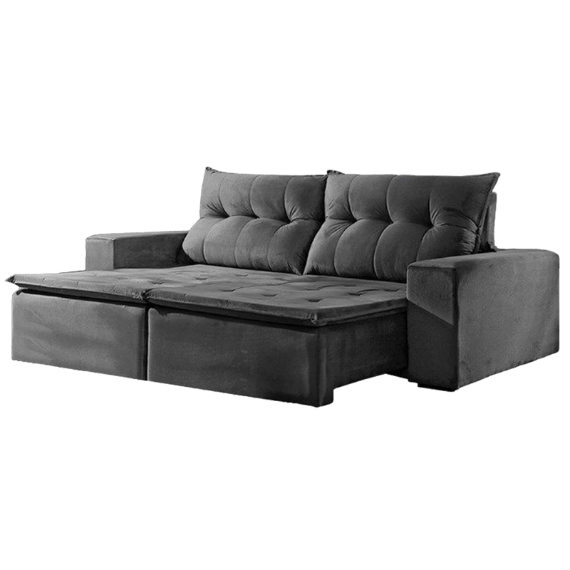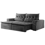 O Sofá Alemanha é um modelo retrátil e reclinável que combina design elegante com alto nível de conforto. Seus assentos retráteis permitem esticar as pernas, enquanto os encostos reclináveis (em múltiplos estágios) garantem o ajuste ideal para a cabeça. É revestido em **Veludo Jolie**, um tecido de toque suave e agradável. A união das funções Retrátil e Reclinável permite transformar o sofá em uma chaise confortável ou até em uma mini-cama para descanso. O revestimento em Veludo Jolie Cinza é o toque final, conferindo uma estética elegante e um conforto inigualável. O Cinza, sendo uma cor neutra, facilita a combinação com tapetes e almofadas coloridas. Invista neste Sofá Veludo 2,30m e leve para sua casa o máximo em sofisticação e funcionalidade.
