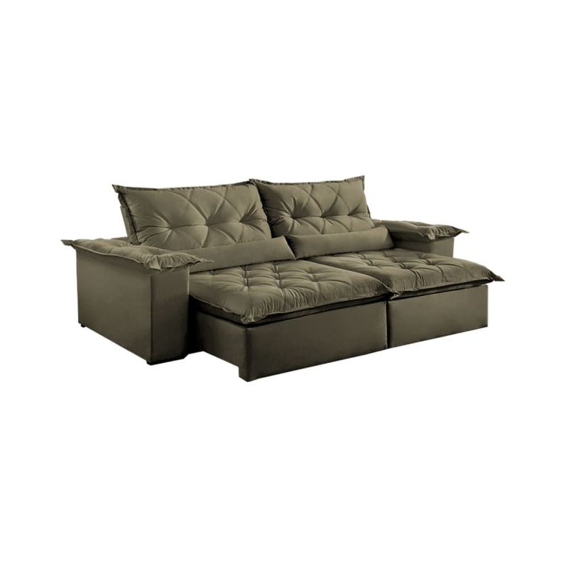 O Sofá Ouro Preto 2,40m da Montano Estofados é uma peça de mobiliário que combina funcionalidade e conforto. Possui assentos retráteis com Pillow Top de 20 cm preenchido com espuma D28 soft skin e molas Bonnel/Pocket. O encosto é reclinável com catraca blindada de 4 ou 5 estágios de inclinação, e as almofadas de encosto são preenchidas com fibra siliconada 100% virgem.